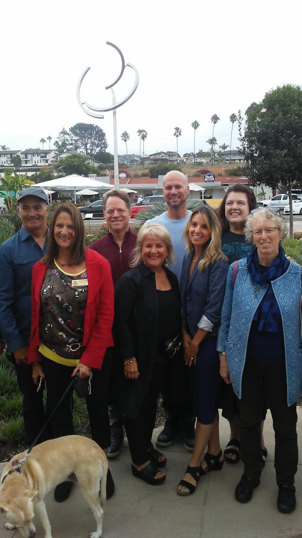 I have special interest in this dedication as the the pedestal for it was funded by Encinitas Friends of the Arts, partly with donations made in memory of my mother Florence Frischer, plus a Neighborhood Reinvestment Program grant from County of San Diego. There was generous in-kind support provided by Qualls Engineering.
