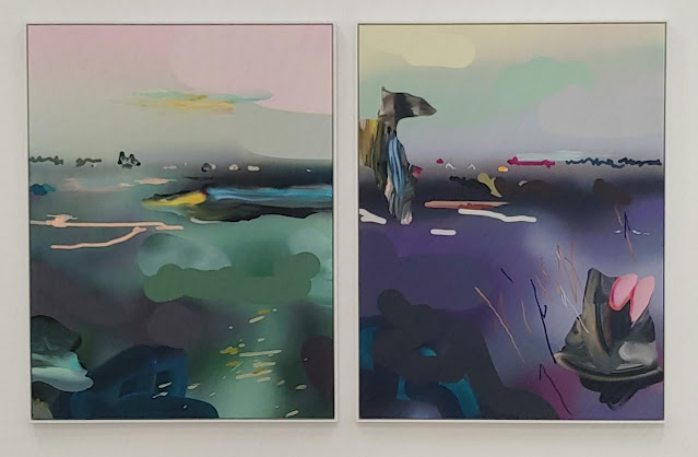 Dual Visions features abstracted works created by artists, Sijia Chen and Kelsey Overstreet as does Distance by Cedrix Crespel. Yes, you can look closely at the work and see a world of detail, but the first impression is a vista.